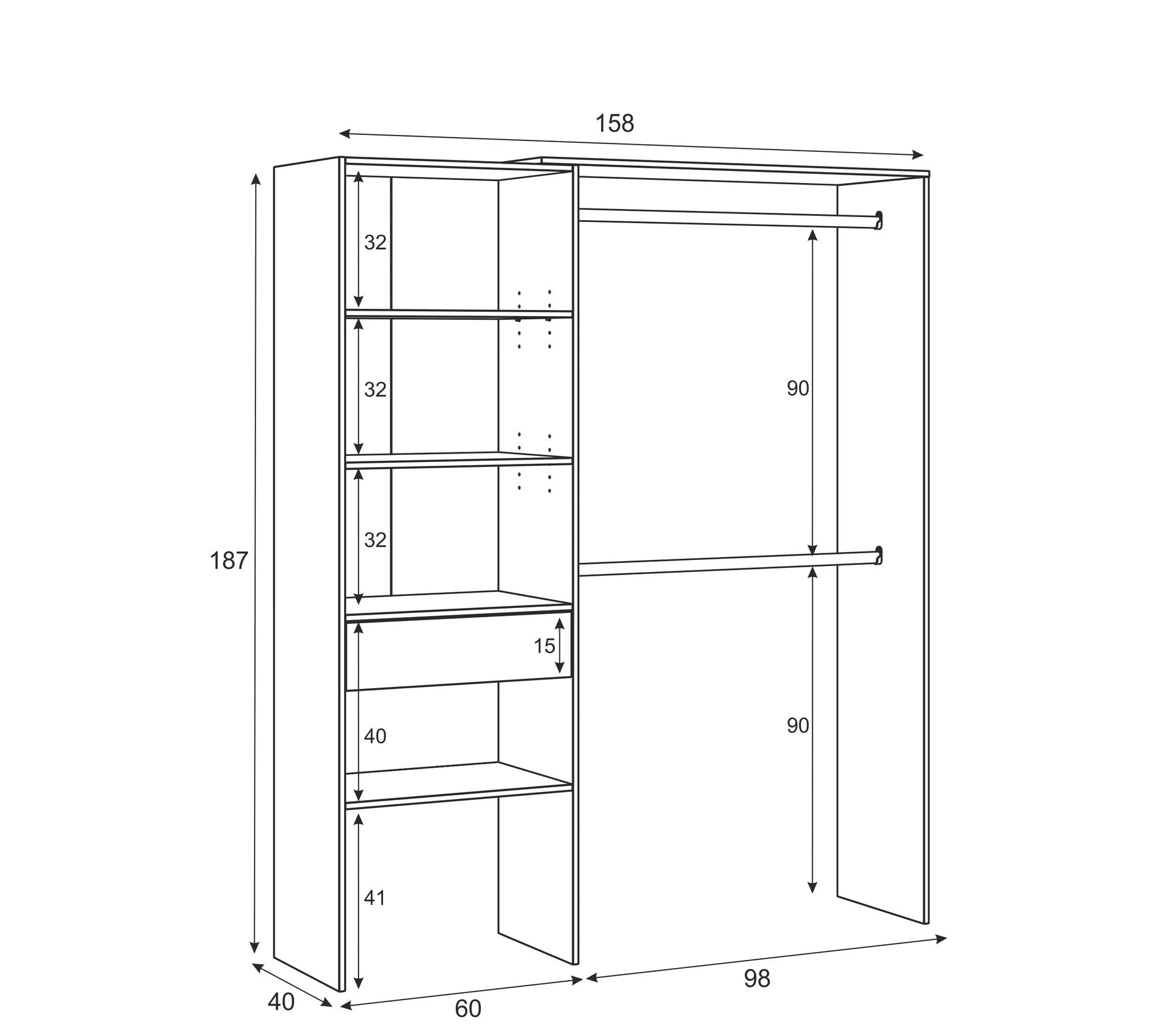 L'armoire dressing CAMILA vous permettra d'optimiser l'espace dans votre intérieur. Avec sa profondeur de 40 cm seulement, elle est peu encombrante. Facile à monter, elle peut être installée dans un studio comme dans une chambre de petite taille. Cette armoire dressing se compose d'une partie à étagères et d'une partie penderie. Vous pourrez choisir d'installer l'étagère à gauche ou à droite. Au quotidien, vous apprécierez les espaces variés offerts par ce meuble. Tiroirs, étagères, penderies, chacune de vos pièces vestimentaires trouve sa place ! Le tiroir de cette armoire dressing est équipé de glissières coulissantes métalliques pour une ouverture facile.