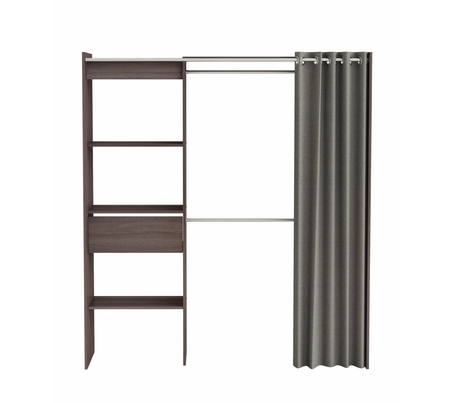 Élégante avec sa finition bois foncé, cette armoire dressing extensible offre une touche déco nature dans la chambre à coucher. Elle est fermée par un rideau gris d'une longueur de 165 cm. Pratique, la penderie est extensible de 114 à 168,2 cm pour s'adapter aux besoins de chaque utilisateur et à la configuration de la chambre à coucher.