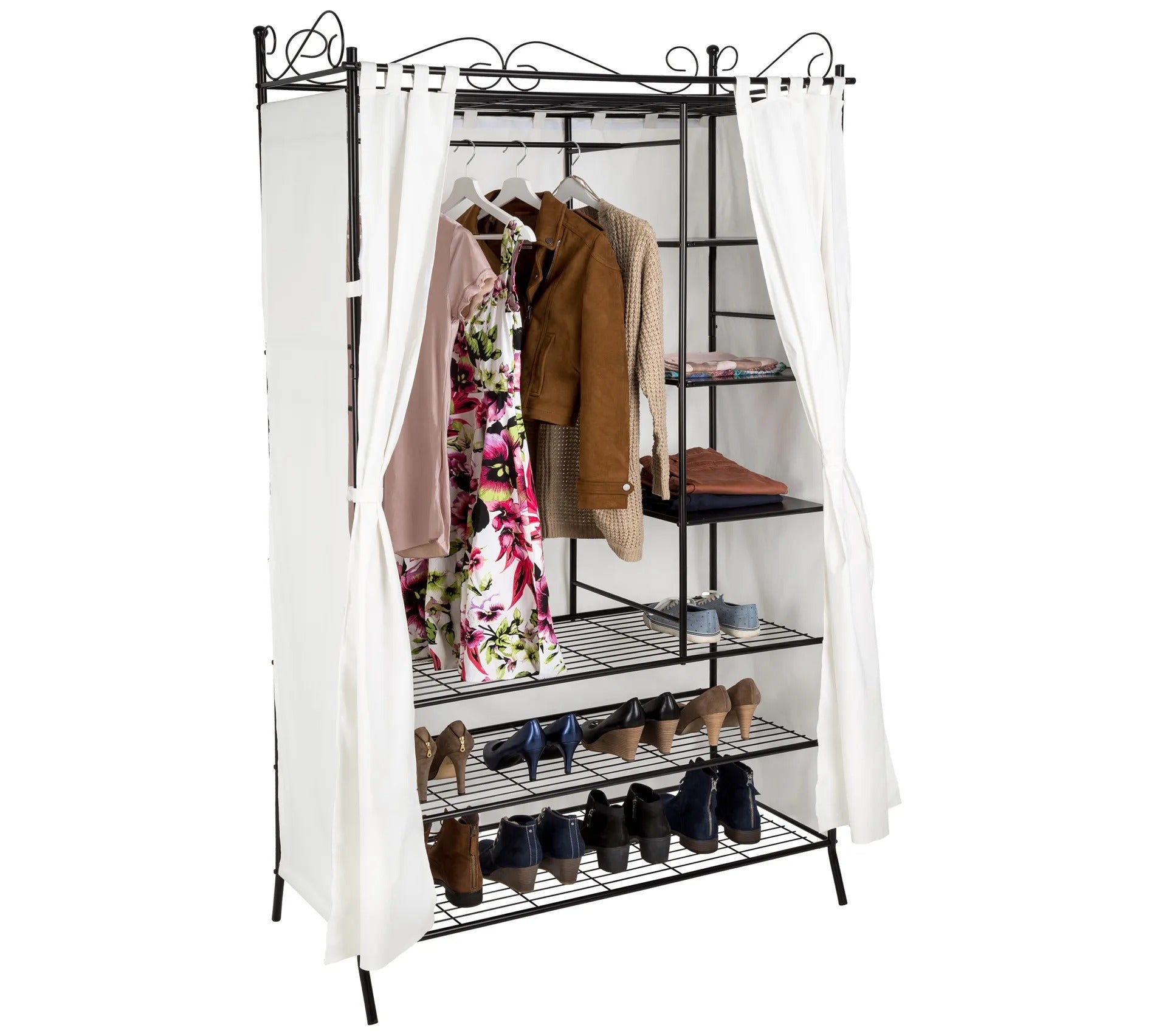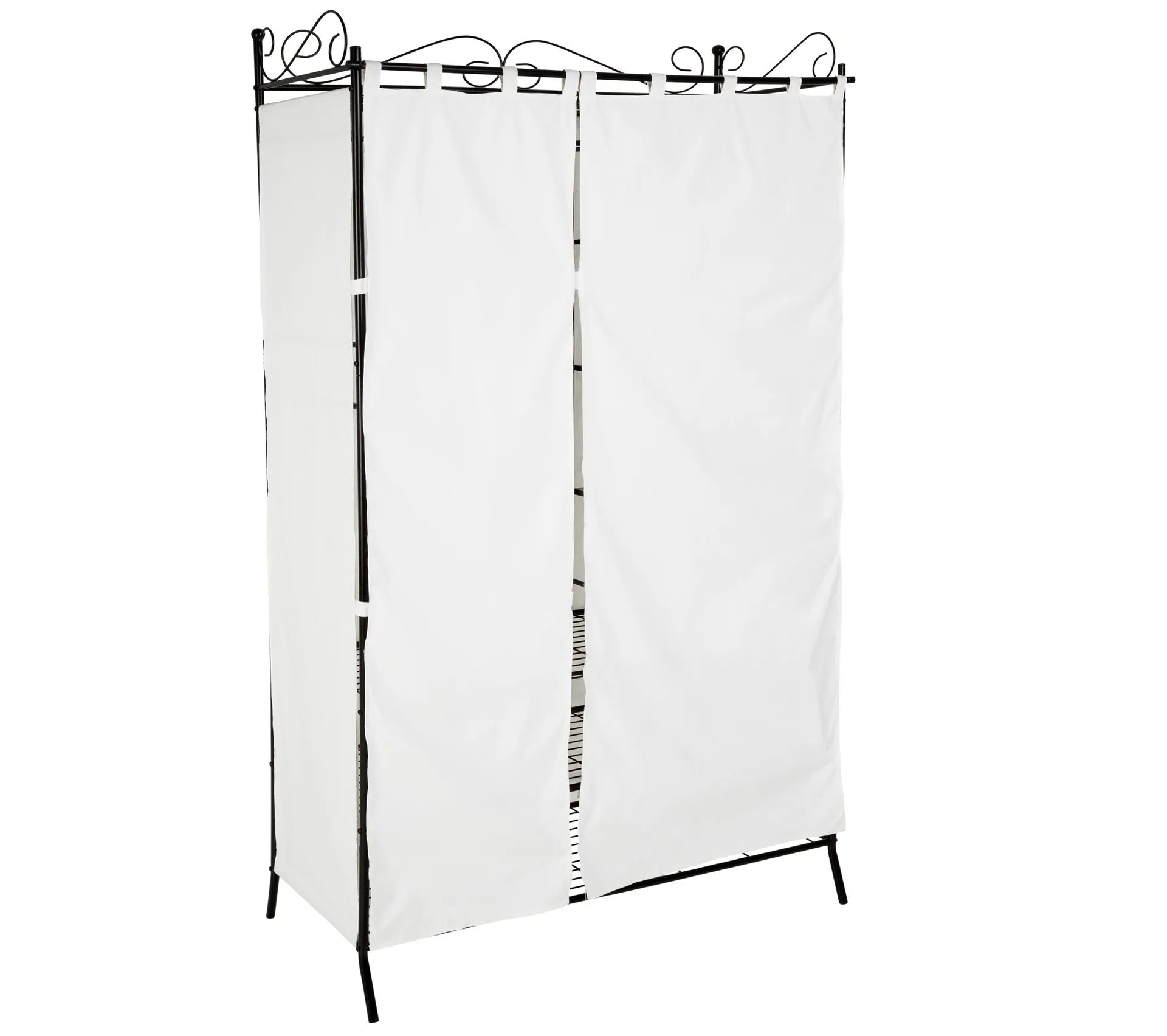 L'armoire penderie élégante réalisée en métal et dotée de rideaux va vous convaincre par son grand espace de rangement.
