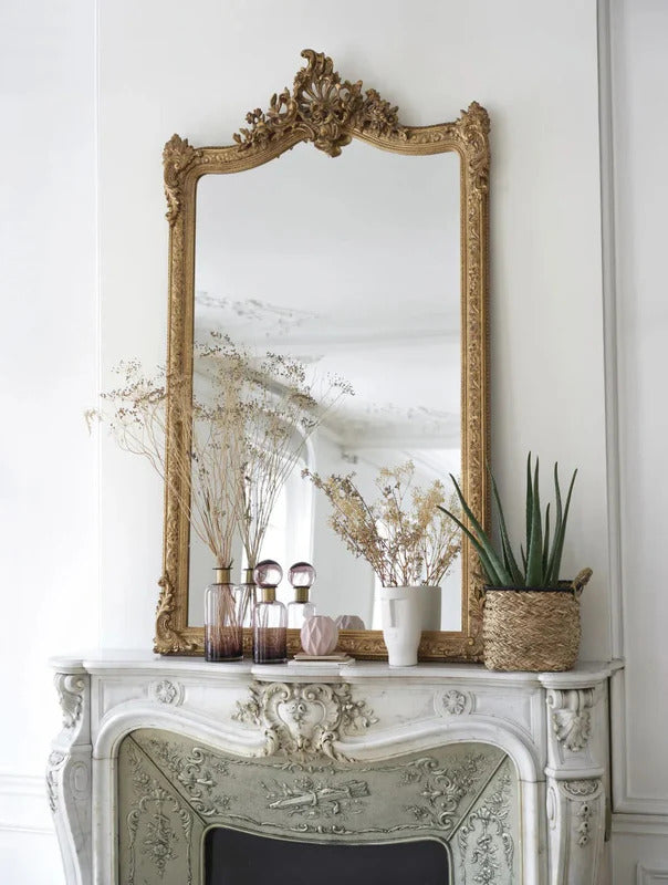 Grand miroir rectangulaire à moulures dorées 104x185