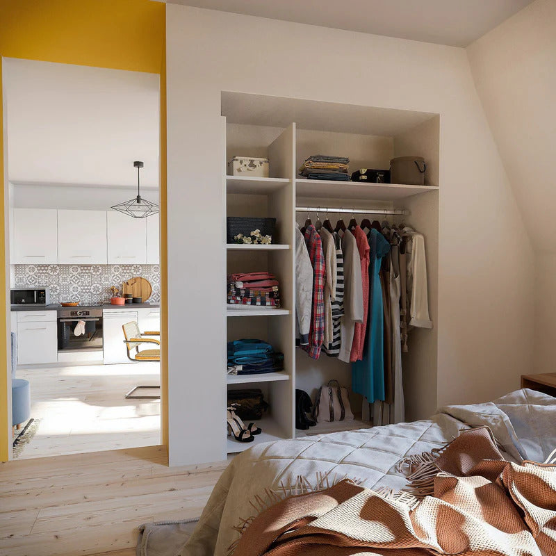 Le Kit dressing Pôle peut être assemblé avec le kit Satelit afin de former un grand dressing.